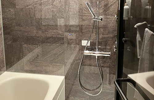 オーバーヘッドシャワーとテンパードアでホテルライクな空間のユニットバスへ